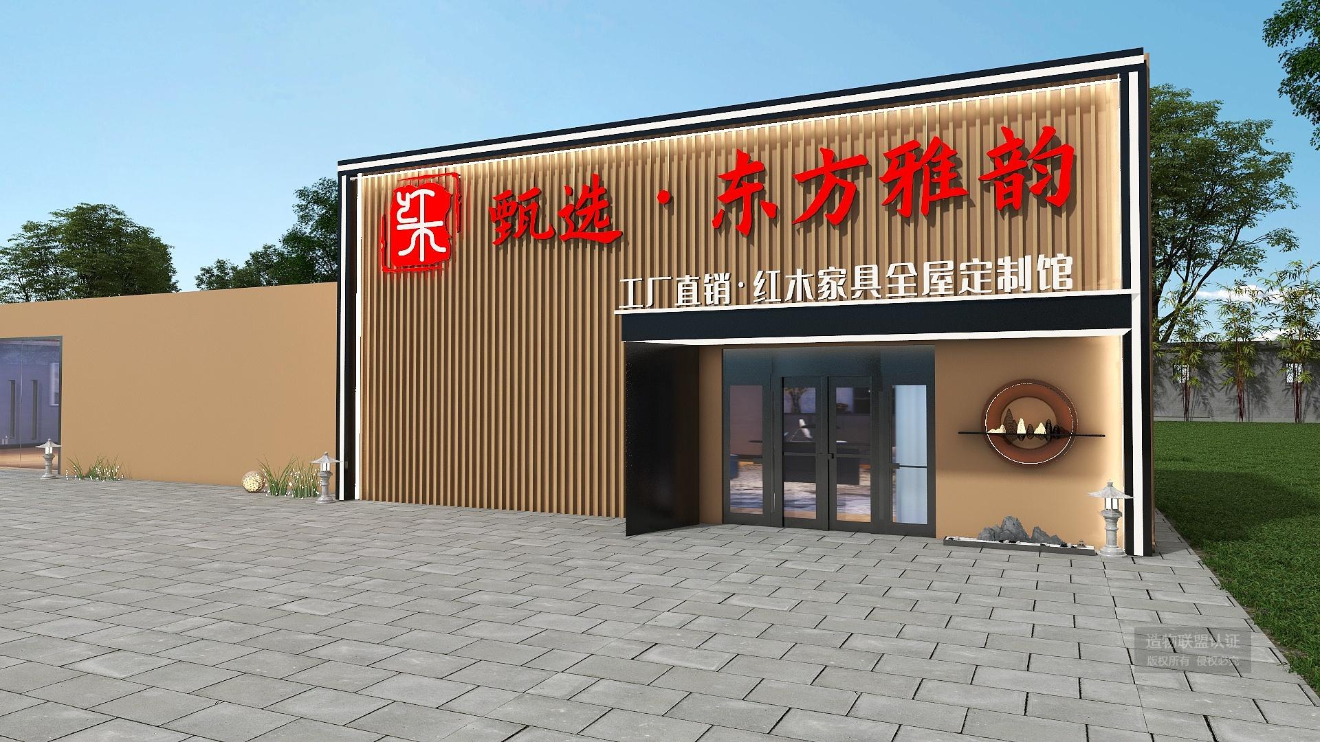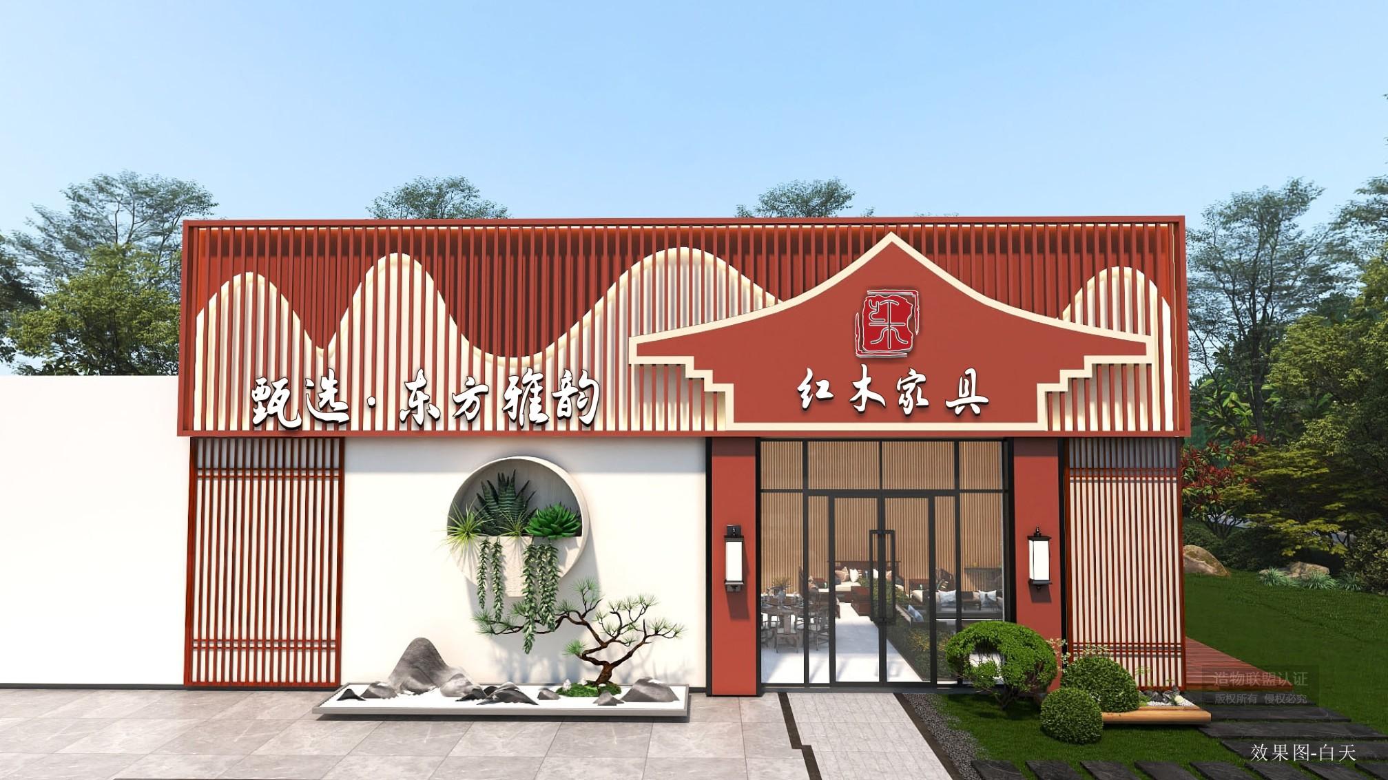 红木家具门头墙体外延设计效果