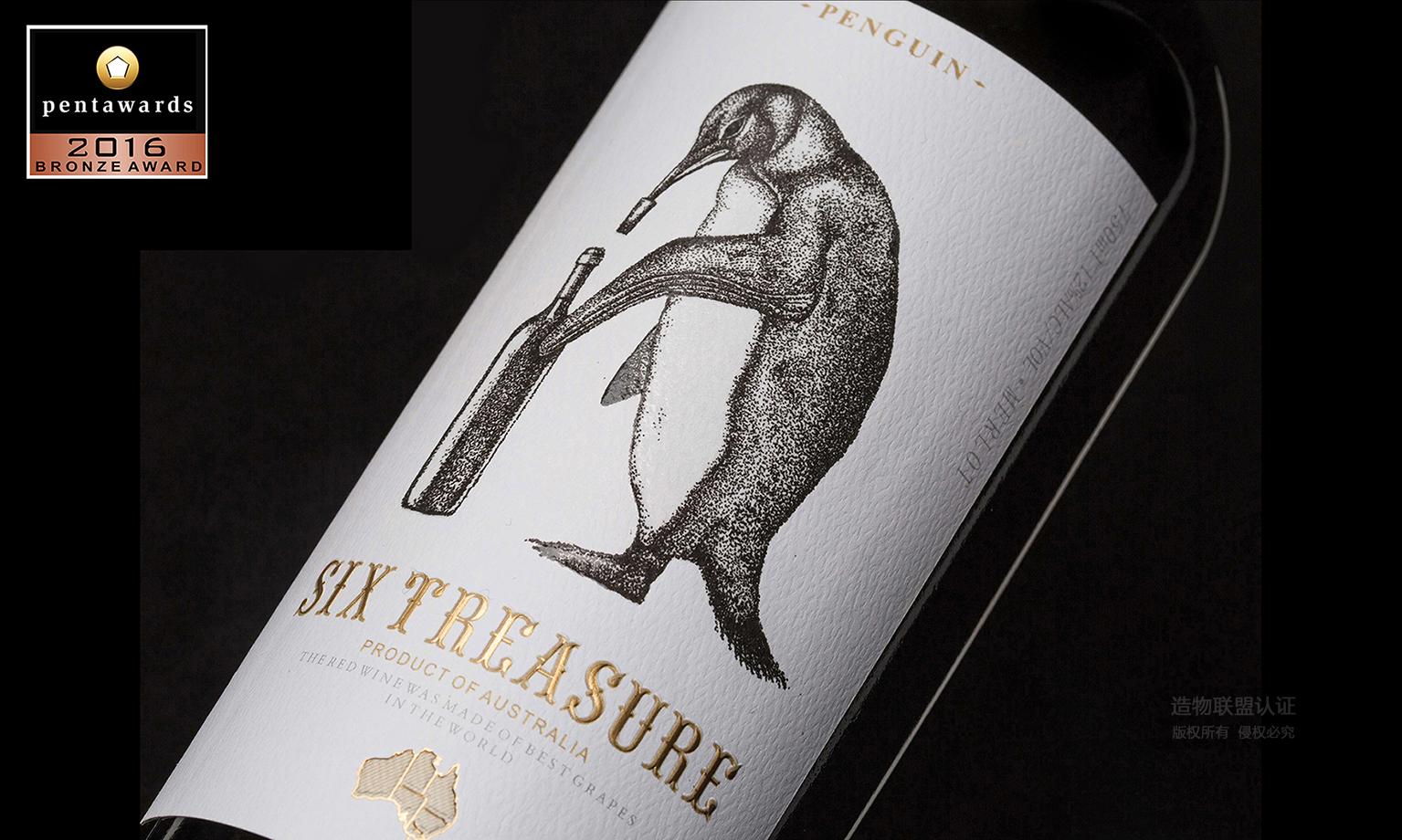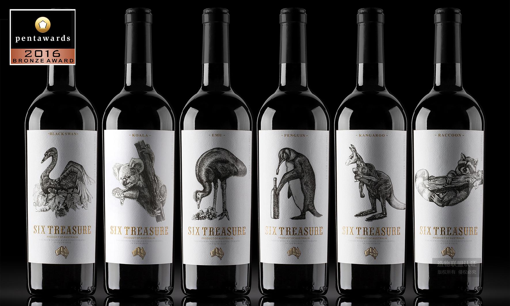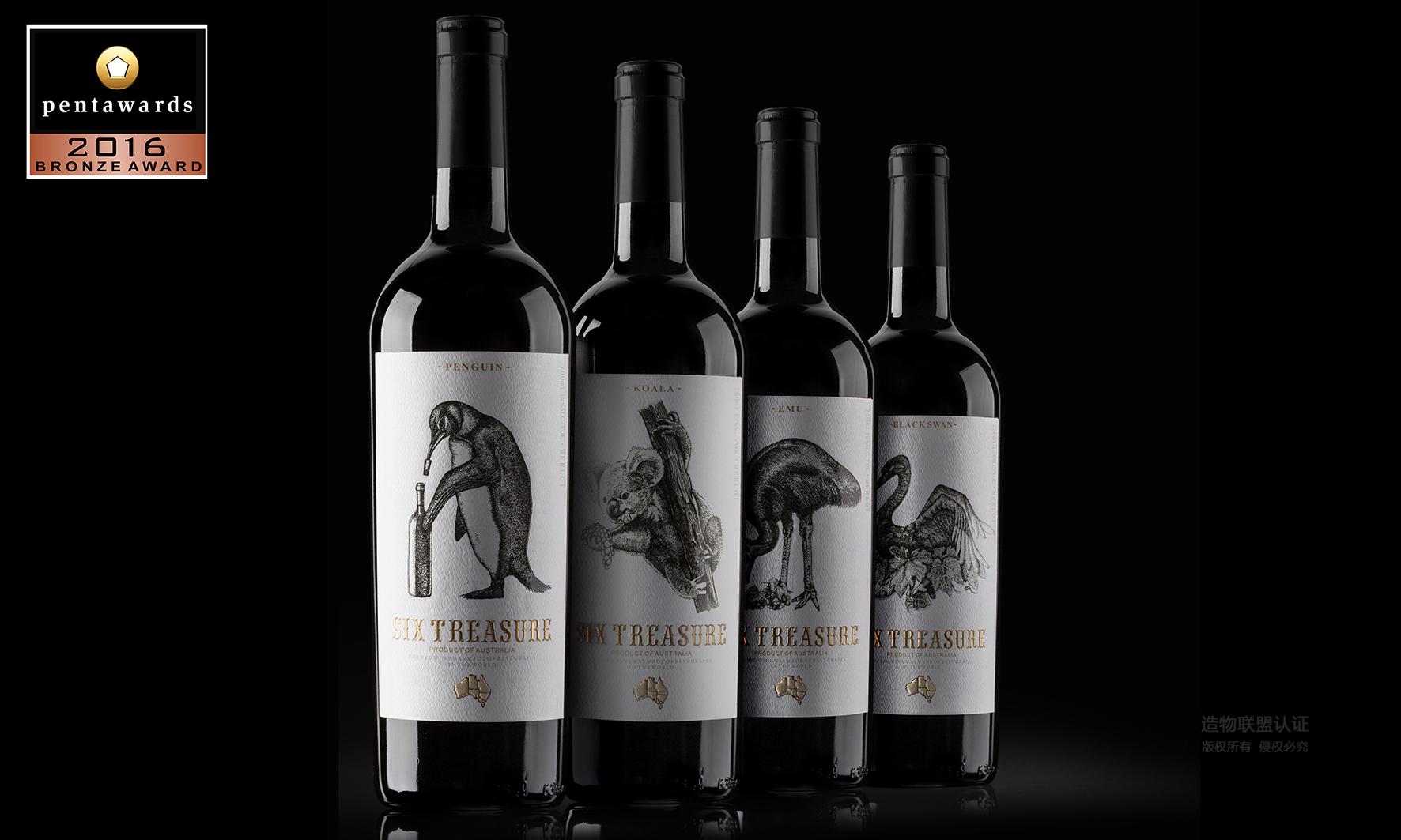 澳洲六宝红酒瓶标设计